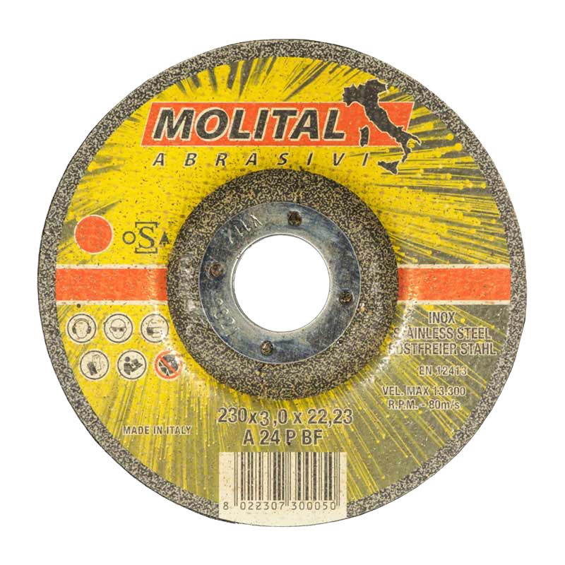 صفحه برش آهن بزرگ مولیتال 3*230 از دو لایه توری از جنس فایبرگلاس با استحکام نسبتا بالای صنعتی و سه لایه رزین صنعتی تولید شده است. از این رو می توان گفت این صفحه از استحکام و مقاومت نسبتا بالایی برخوردار می باشد. همچنین این صفحه سنگ دو عدد پولکی فلزی دارد از این رو امکان نصب آن به راحتی روی دستگاه وجود دارد. صفحه برش آهن بزرگ مولیتال 3*230 مطابق با استاندارد EN12413 تولید شده است. جنس دانه بندی های خاص رزین در این محصول و همچنین بافت خاص آن باعث شده است تا این صفحه سنگ دارای طول عمر نسبتا بالایی باشد.