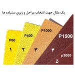 برای پرداخت کاری همیشه ابتدا از سنباده زبر، باید استفاده شود سپس به ترتیب از سنباده نرم استفاده کنید .